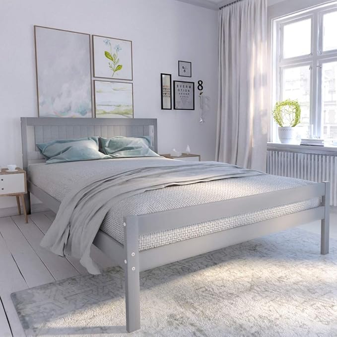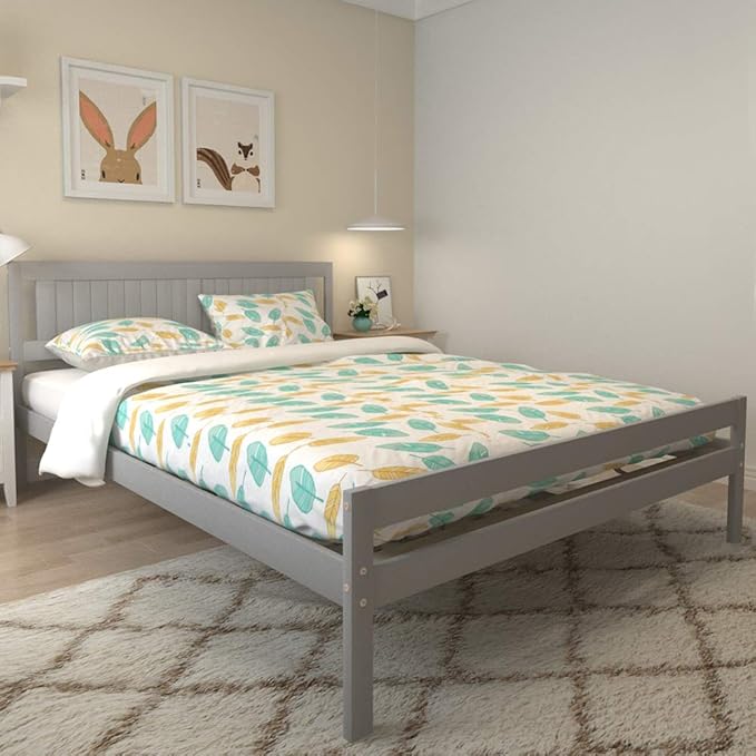 Wood bed frame twin size platform bed with headboard footboard wooden slat support mattress.