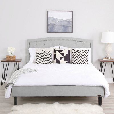 Baxton studio adelaide queen upholstered platform bed in light grey. Provides extra secure connections, reducing shifting and squeaking. Dorel living tufted headboard, full/queen, beige. This storage bench is the perfect footboard partner to store books, magazines, blankets, extra pillows, and other treasures. Rated 4 out of 5 stars.